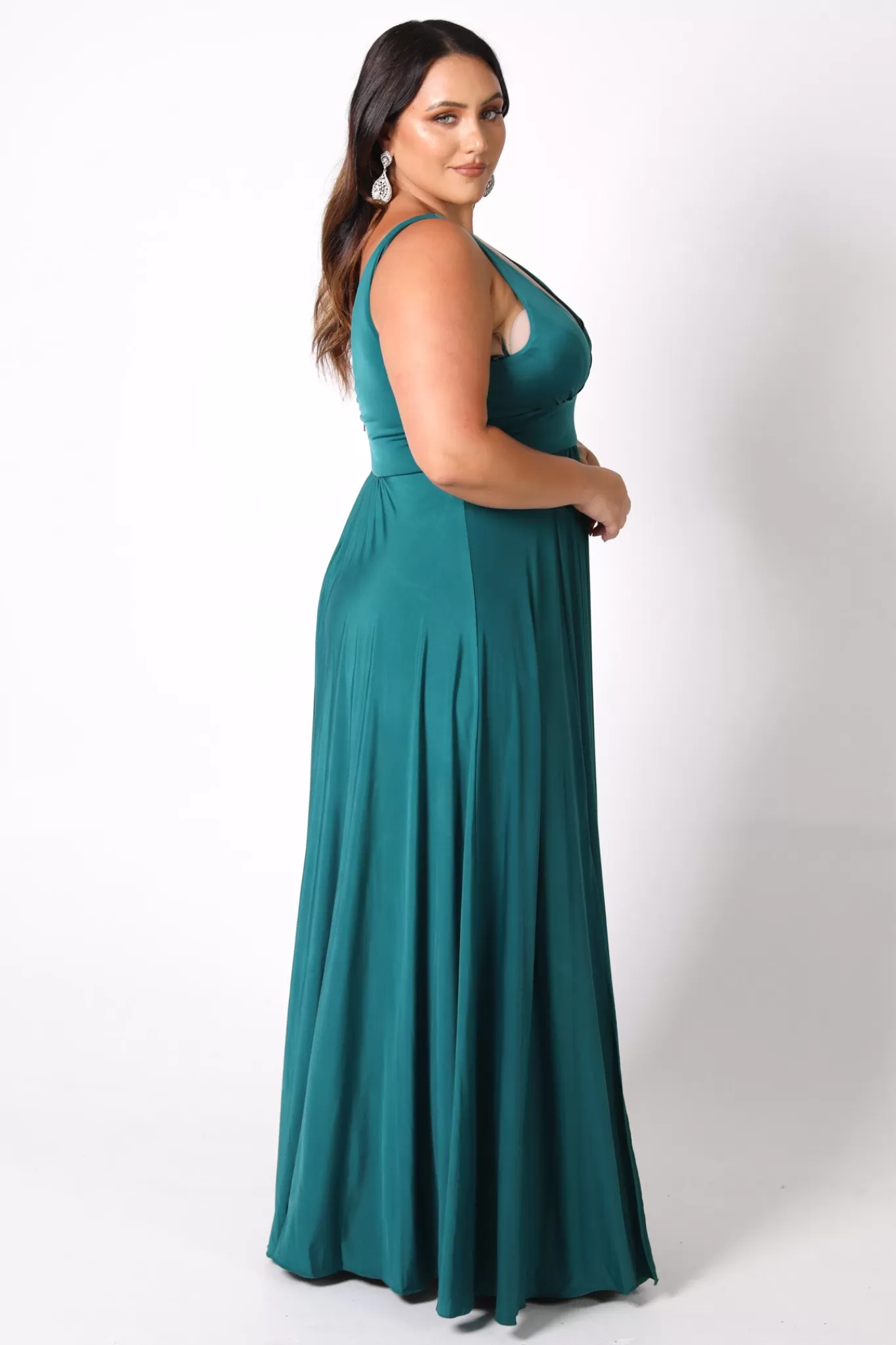 Our CATALINA maxi dress is effortlessly chic. Featuring deep V-neckline A-Line silhouette with gathering detail at the front and thigh-high slit. Wear this beauty with soft wavy hair and drop earrings. Perfect as a bridesmaid dress or for school formal and other formal occasions.